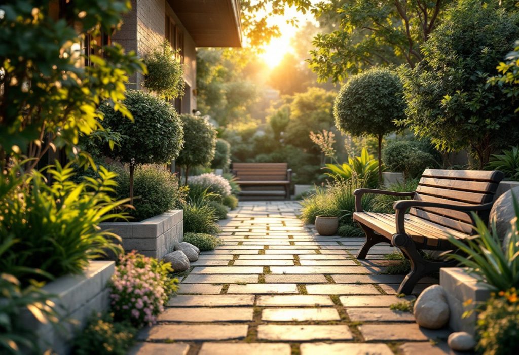 Les allées et chemins ne doivent pas être négligés car ils jouent un rôle clé dans la circulation autour du jardin. Ils guident le flux de marche tout en ajoutant de la structure paysagère. Choisissez des matériaux qui minimisent l’entretien, comme les graviers stabilisés ou les pavés autobloquants.